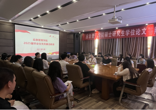 为扎实推进学习贯彻习近平新时代中国特色社会主义思想主题教育,引导毕业生党员坚定理想信念,增强廉洁自律意识,扣好走向社会的“第一粒扣子”,5月28日下午,应急管理学院于文综楼518会议室开展2025届毕业生党员廉洁教育活动。学院党委书记谢玉芬为与会党员上了一堂生动而深刻的廉洁教育主题思政课。