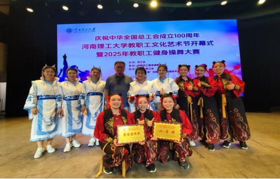 6月7日,河南理工大学2025年教职工文化艺术节开幕仪式暨健身操舞大赛在南校区小礼堂隆重举行。经过激烈角逐,我院教职工代表队凭借出色的表现从14支队伍中脱颖而出,荣获二等奖和最佳服饰奖,充分展现了我院教职工昂扬向上的精神风貌和团结协作的集体风采。