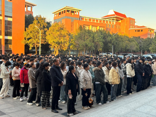 下午4时50分,伴随着急促的消防警报在文综楼响起,演练正式启动。楼内同步施放烟雾弹,模拟真实火场环境,浓烟迅速蔓延,能见度降低。全体学生在老师引导下,按照预定疏散路线,以“低姿、捂口、靠右行”的方式有序撤离。过程中同学们沉着冷静、互相照应,整个疏散过程紧张而不慌乱。仅用6分钟,全体师生安全抵达指定集合点,随后各班快速清点人数并上报,流程衔接顺畅、组织有条不紊。