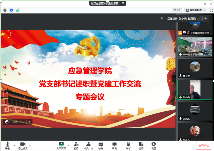 12月13日,应急管理学院以线上方式召开党支部书记述职暨党建工作交流大会。会议由该院党委书记张光胜主持,该院全体院领导班子成员和支部书记参加会议。