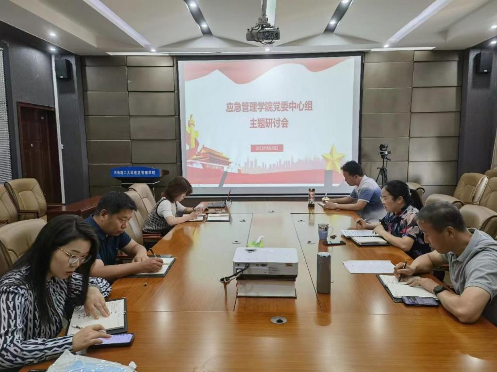 为推进学习贯彻习近平新时代中国特色社会主义思想主题教育持续走深走实,应急管理学院于8月29日在文综楼518会议室召开党委中心组主题研讨会,我院党委书记谢玉芬、院长张小兵、副院长吴晓涛和其他党委中心组成员参加。