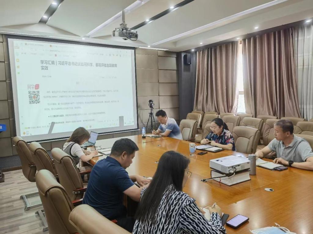 会议伊始,在谢玉芬的带领下,大家深入学习了习近平总书记在四川考察时,对如何科学、客观评估主题教育实效提出的具体要求。习近平总书记强调,要对主题教育的实效进行科学、客观评估,并清晰明确了主题教育成果的检验标准:一是要检验理论学习成效;二是要检验调查研究成效;三是要检验推动发展成效;四是要检验检视整改成效;五是要检验干部队伍教育整顿成效。随后,谢玉芬指出,习近平总书记的重要讲话精神为进一步推动学习贯彻习近平新时代中国特色社会主义思想主题教育走深走实明确了工作重点和努力方向,全体党委中心组成员应切实将主题教育整改措施落到实处,确保检视评估取得实效。最后,党委中心组成员分别对讲话精神进行了自我剖析和研讨发言。大家纷纷表示,要学深悟透、结合实际,真正把学习成效转化为奋发进取的强大动力和推动工作的实绩实效。