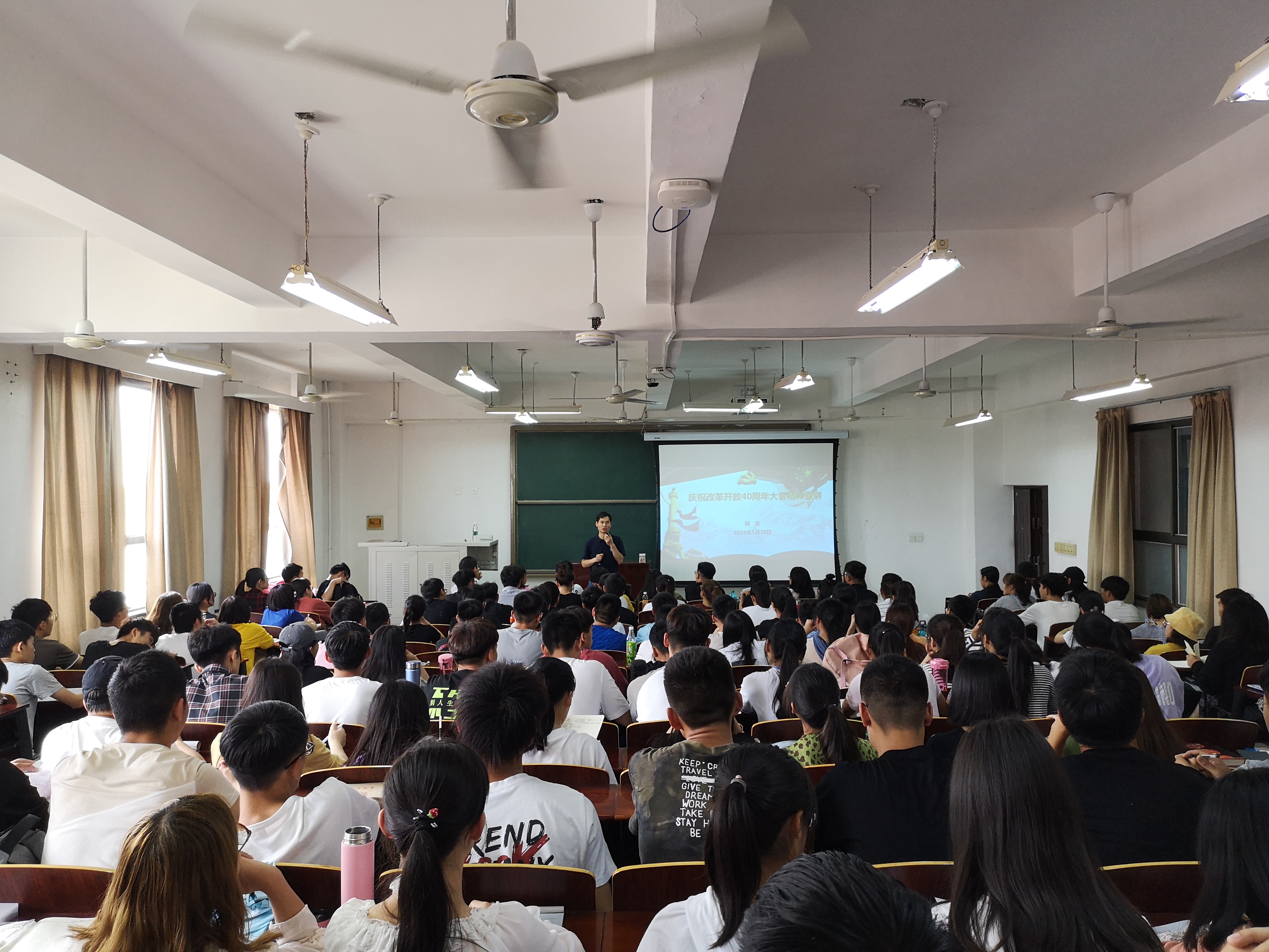 陈昊书记首先从回顾历史、总结经验、动员全党全国各族人民继续奋斗三个方面阐述了召开庆祝改革开放40周年大会的目的意义。从十一届三中全会召开的时代背景及伟大意义、党作出实行改革开放历史性决策的背景及伟大意义、10个方面回顾改革开放40年历程、三个“伟大飞跃”、40年实践的历史结论、改革开放40年9条宝贵经验和对新时代全面深化改革开放、坚持和发展中国特色社会主义的庄严宣售和殷切期望这七个方面具体深入的论述了大会主要内容和精神。同时,他结合自身实际,用朴素生动的语言讲述了自己的故事、身边的故事,生动地展现出了改革开放给我国经济、社会、民生等方面的巨大转变,传递出了时代正能量。最后,陈昊书记向广大同学提出了希望,他希望广大青年学生可以承担起自己的历史使命,奋发图强,将来接过时代的接力棒,将改革开放的时代精神继续传递下去,为实现中华民族的伟大复兴和国家强盛贡献力量。