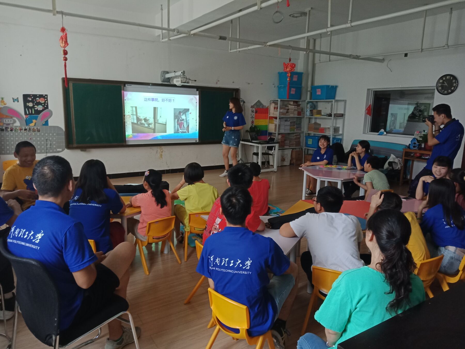 7月20日,宣讲团成员来到焦作市儿童福利院宣传应急安全知识。活动伊始,团队成员和小朋友们先是自我介绍和才艺展示,包括唱歌、跳舞、吉他伴奏等形式多样的表演。不仅调动了现场的气氛,也使得小朋友们慢慢融入课堂中。之后,由寇佳诣同学给小朋友们上了一堂生动形象的安全知识小讲堂。内容包括危险行为的辨别、消防安全、海姆立克急救法的操作以及烫伤的正确处理方法等。课堂上,小朋友们积极回答问题,主动动手实践,和团队成员一起完成了课堂内容要求。最后,谷老师带领团队成员一行人参观了小朋友们的教室、餐厅、宿舍等地方。谷老师讲到随着时代的进步,这里的小朋友们营养完全能跟上身体的需要,而且每个学期学校还会组织小朋友们去全国各大名胜古迹参观。这里每一位老师最大的心愿就是每个小朋友都能健康快乐的成长。
