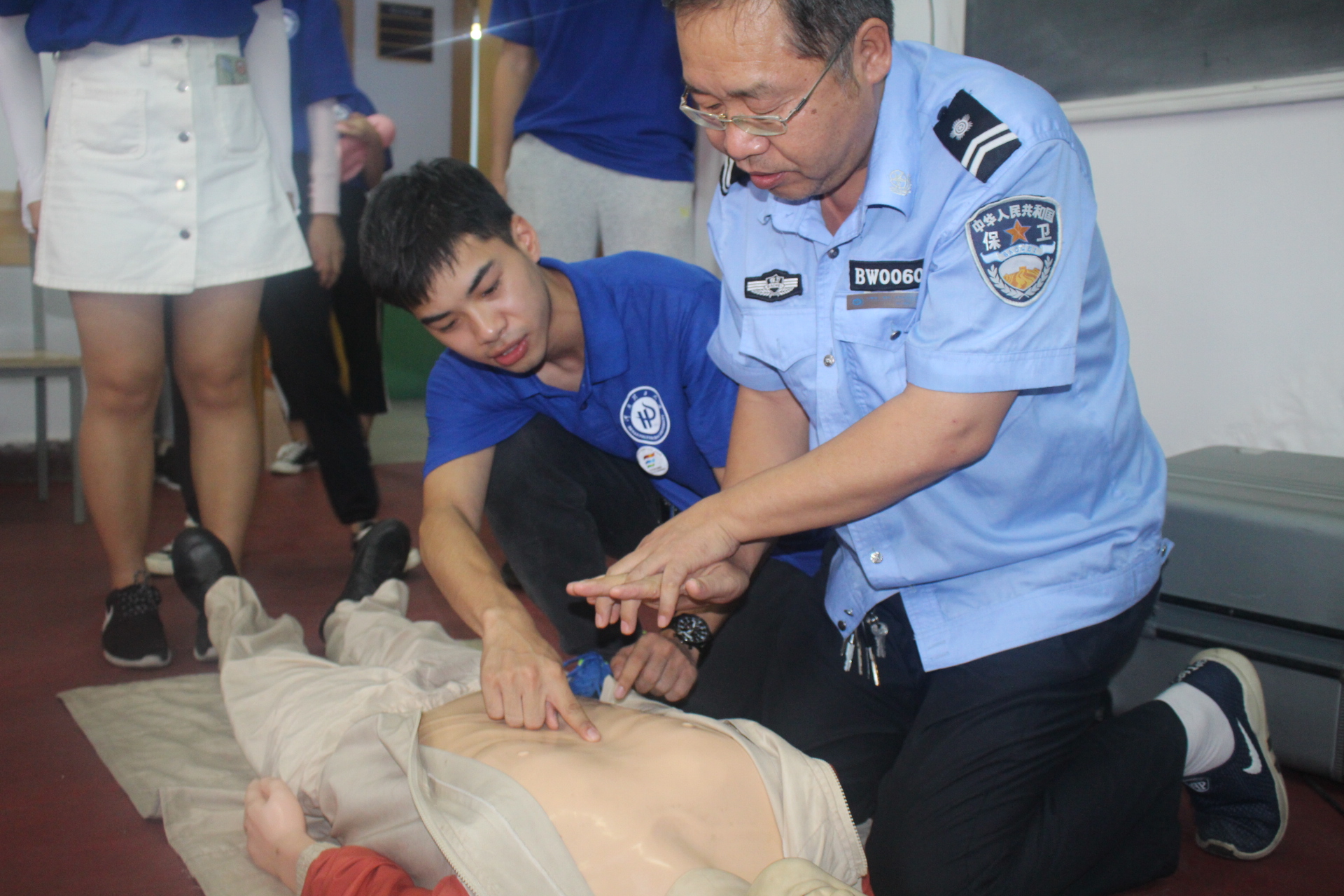 “身体绷直”、“手臂不要打弯”、“先观察周围环境再喊人拨打120”……这是在社区安保人员进行CPR心肺复苏体验的时候,他们最容易犯的错误,同时也是我们在培训中说的最多的话。社区生活应急主要分为燃气中毒、防火防盗防洪、电梯事故、家庭应急物资准备这四个部分。在培训结束之后,安保人员纷纷表示,这是他们觉得最实用的一次培训,以后遇见这种突发情况,他们再也不会手足无措了。小区里面的老人小孩本来就很多,学一些基础的应急知识,以防万一,争做高素质高技能的安保人员。同时,社区管理主任吴凤霞对我们这次的培训做出了充分的肯定,并希望我们应急管理学院以后可以多去给他们做一些应急方面的培训。这次培训取得的良好效果为我们以后的宣讲增长了信心并打下了良好的基础,同时也让我们更有动力给更多的公众普及国家安全意识。