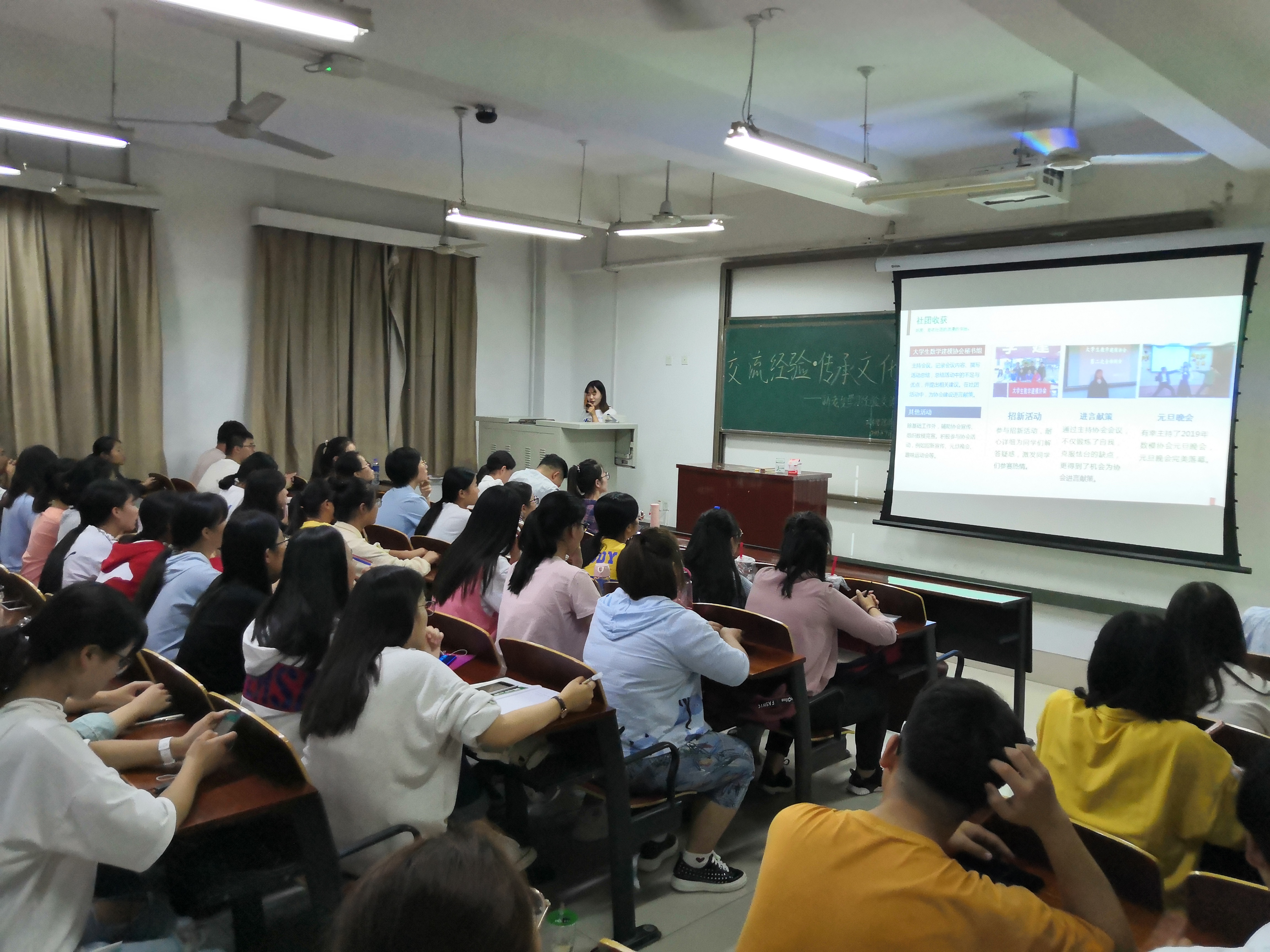 会议伊始,主持人介绍了到会的学长学姐代表。随后,贺靖分享了自己的学习心得,她结合自己的经历主要对保研的条件进行了介绍,并强调了大学学习的重要性。随后,司懿从自身经验切入,形象生动的向大家介绍了学校各类比赛活动,鼓励大家积极参与学术性的比赛活动以丰富课余生活。接着,王莹莹作为一名班干部讲述了如何处理好学习和工作的关系。最后,第十一届学生会主席陈哲从学习、生活和工作等方面为新生解疑答惑。