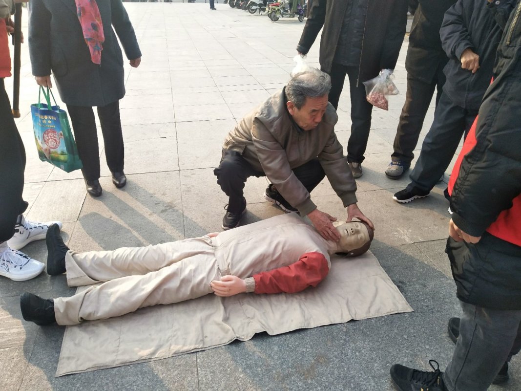 为加强市民突发事故自救知识教育,提高剧名紧急情况自救能力,12月1日上午,学行践团队成员刘晴晴和张照鹏与应急学院志愿者一同来到焦作市东方红广场开展“黄金四分钟心脏复苏”宣传活动。