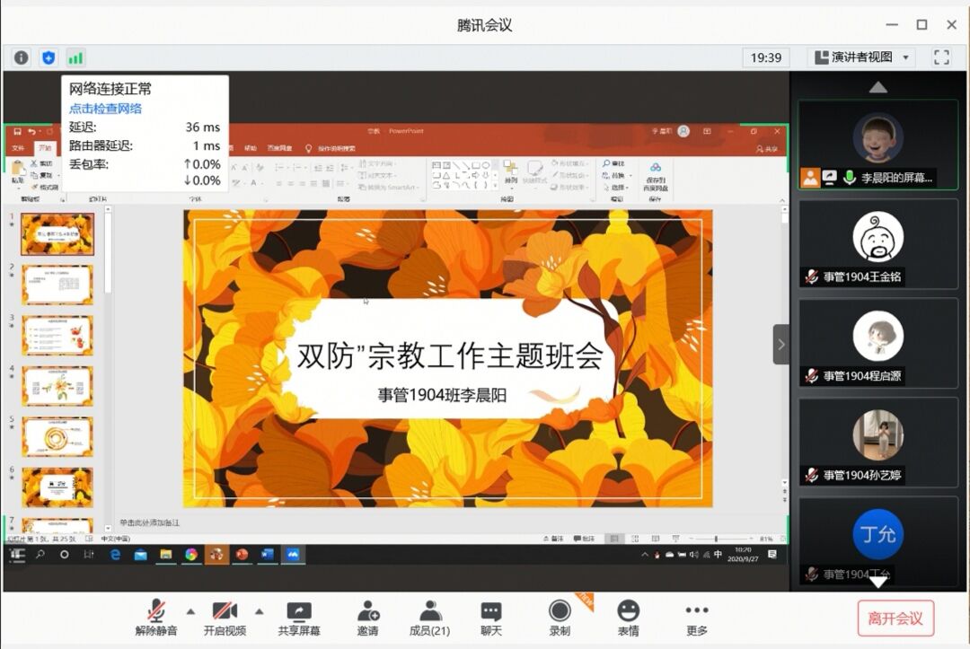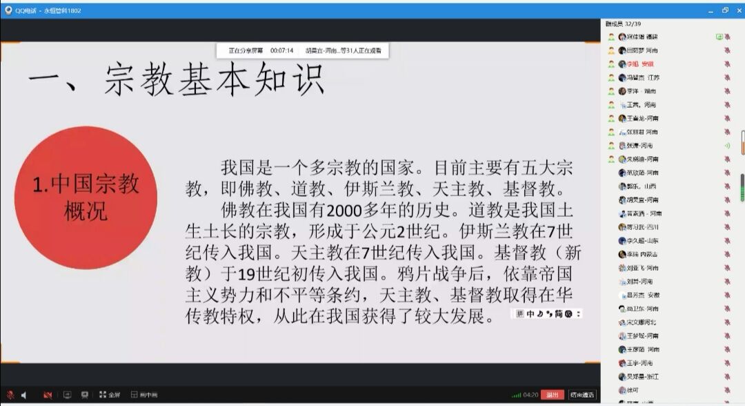 2020年9月27日,应急管理学院各班级在线举办了“双防”宗教工作主题班会。从宗教的基本知识出发,介绍了我国现有宗教及其历史,使同学们对宗教概况有了一定了解。随后介绍了宗教工作部分,从马克思主义宗教观及理论基础到党的宗教问题基本方针,再到宗教工作的地位和作用,最后明确提醒“共产党员、共青团员不能信仰宗教”,使同学们掌握了党和国家对待宗教工作的明确态度,认清自身定位,牢记党的宗旨,坚定理想信念。