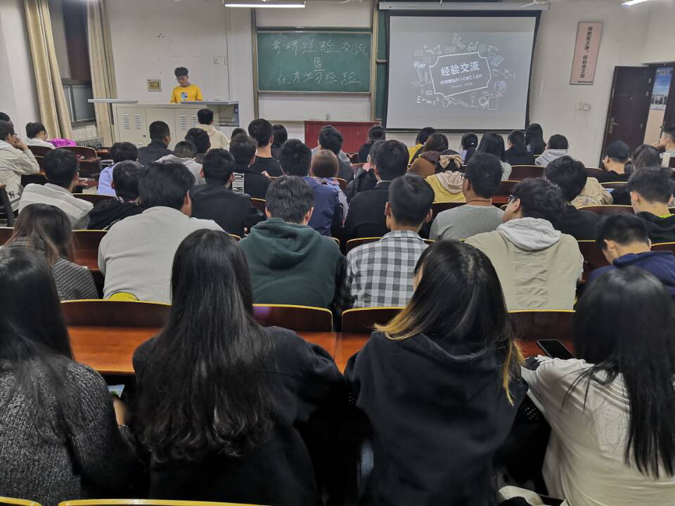 为加强学生对考研知识和经验的了解,营造积极向上的学风,调动同学们学习的积极性,我院11月4日于文科综合楼509室召开了考研经验交流暨优秀学习经验交流会。18级学生潘飞、余天民,李梦乐,作为受邀优秀学生代表及全体19级同学参与了本次交流会。