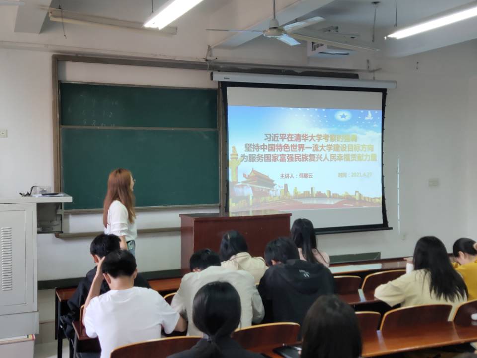 会上,各年级辅导员老师、班级干部做“习近平在全国脱贫攻坚总结表彰大会上的讲话”和“习近平总书记在清华大学考察时的重要讲话”学习活动。会议指出,在迎来中国共产党成立一百周年的重要时刻,我国脱贫攻坚战取得了全面胜利。接着,通过对五大历史性成就、脱贫攻坚重大任务、脱贫攻坚精神等的具体阐述,各位同学对脱贫攻坚有了更透彻、更深入的了解。然后,分别从七个方面阐述中国特色减贫道路、中国特色反贫困理论,使同学们更加深刻领会中国智慧,让同学们了解到中国为构建人类命运共同体所做的贡献。其次,同学们一同观看脱贫攻坚大型政论片《摆脱贫困》相关视频,聆听了一个个真实的扶贫故事,感悟了“中国脱贫攻坚战是如何打赢的”这一主题。最后,对习主席祝贺清华大学建校110周年及在清华大学美术馆、智能技术实验室、体育馆等地的重要讲话进行细致讲解,习主席强调,清华大学的发展历程是我国高等教育发展的一个生动缩影,在一个国家高等教育体系建设中,需一流大学、当代青年、教师等共同努力。
