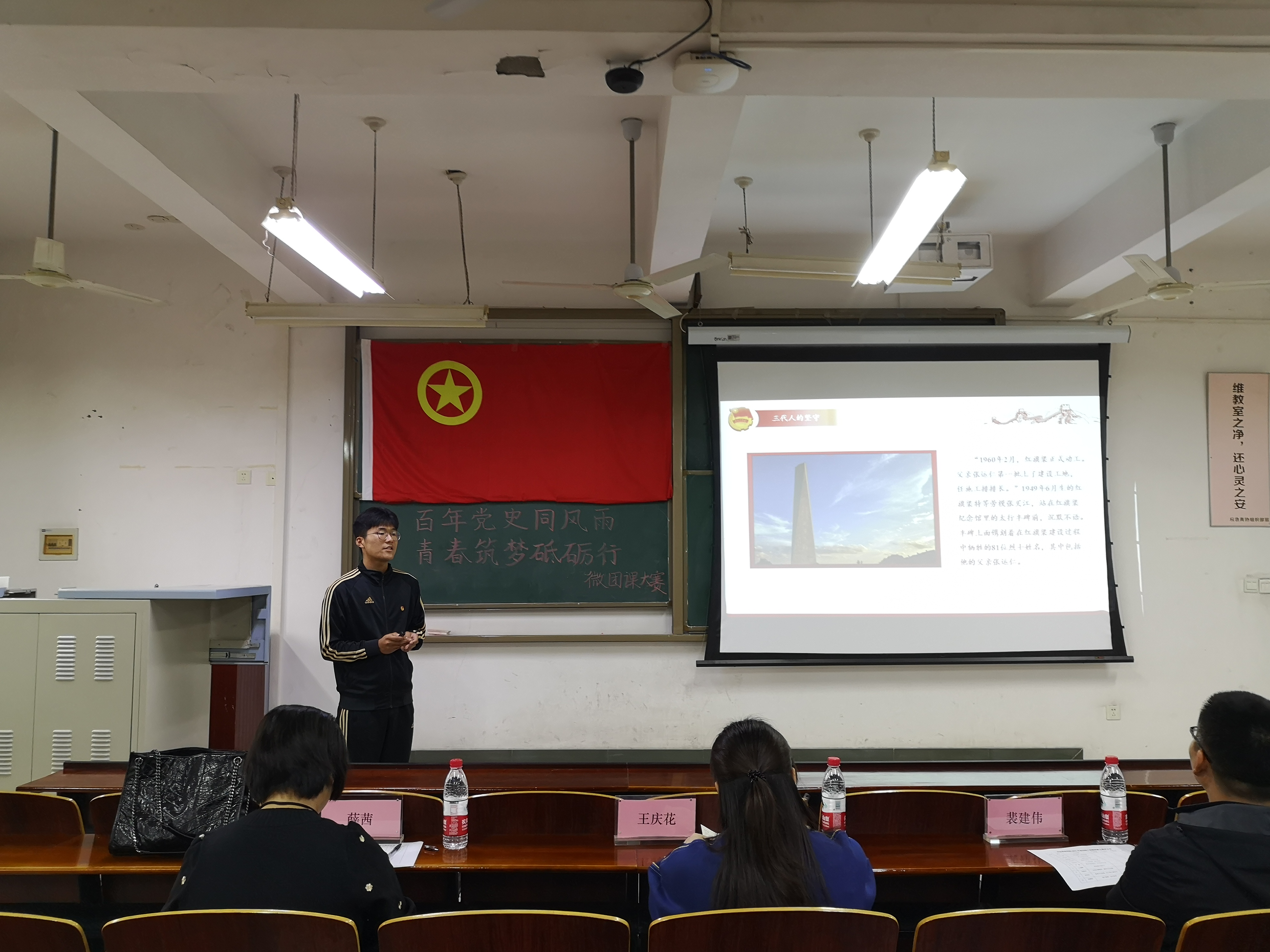 比赛过程中,参赛选手们或真情诉说,或慷慨宣言。他们紧紧围绕参赛主题,从模范人物、历史事件、红色精神等方面声情并茂地讲述,展现了新时代青年的满腔热血。同时,选手通过ppt演示、案例分析、视频展示等丰富多样的表现形式,为现场观众讲解了精彩的团课。其中,王盛颖同学的参赛作品《谁是最可爱的人》以边防战士为例,生动再现了战士们坚守边疆的革命热忱与感人至深的爱国情怀,高度赞扬了战士们的奉献精神、红色理想和纯真情感。