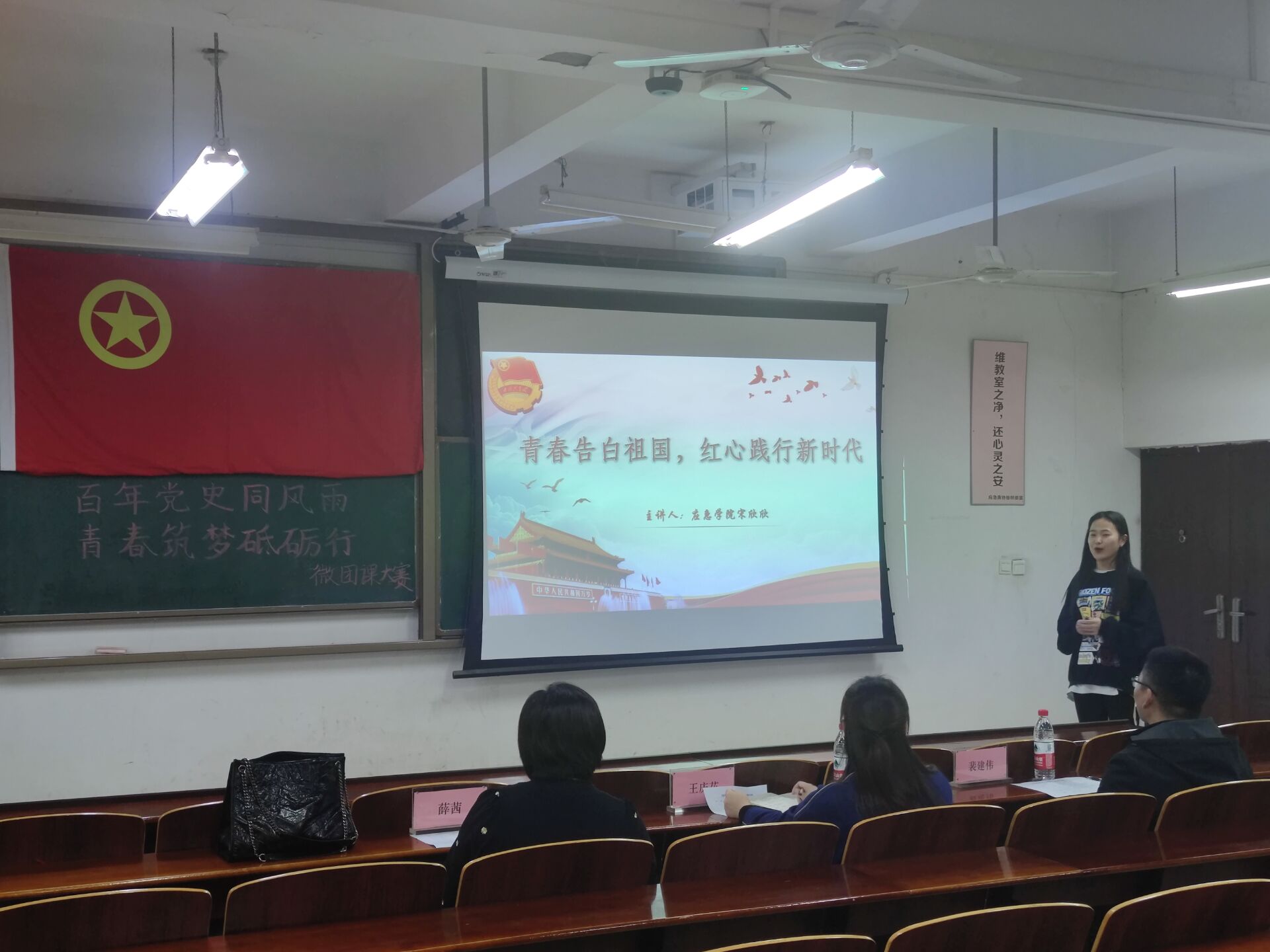 11月12日下午,应急管理学院在文综楼509室举行“百年党史同风雨,青春筑梦砥砺行”微团课大赛。大赛由音乐学院舞蹈系主任王庆花、校团委科创实践部部长薛茜、宣传部意识形态科科长裴建伟担任评委。