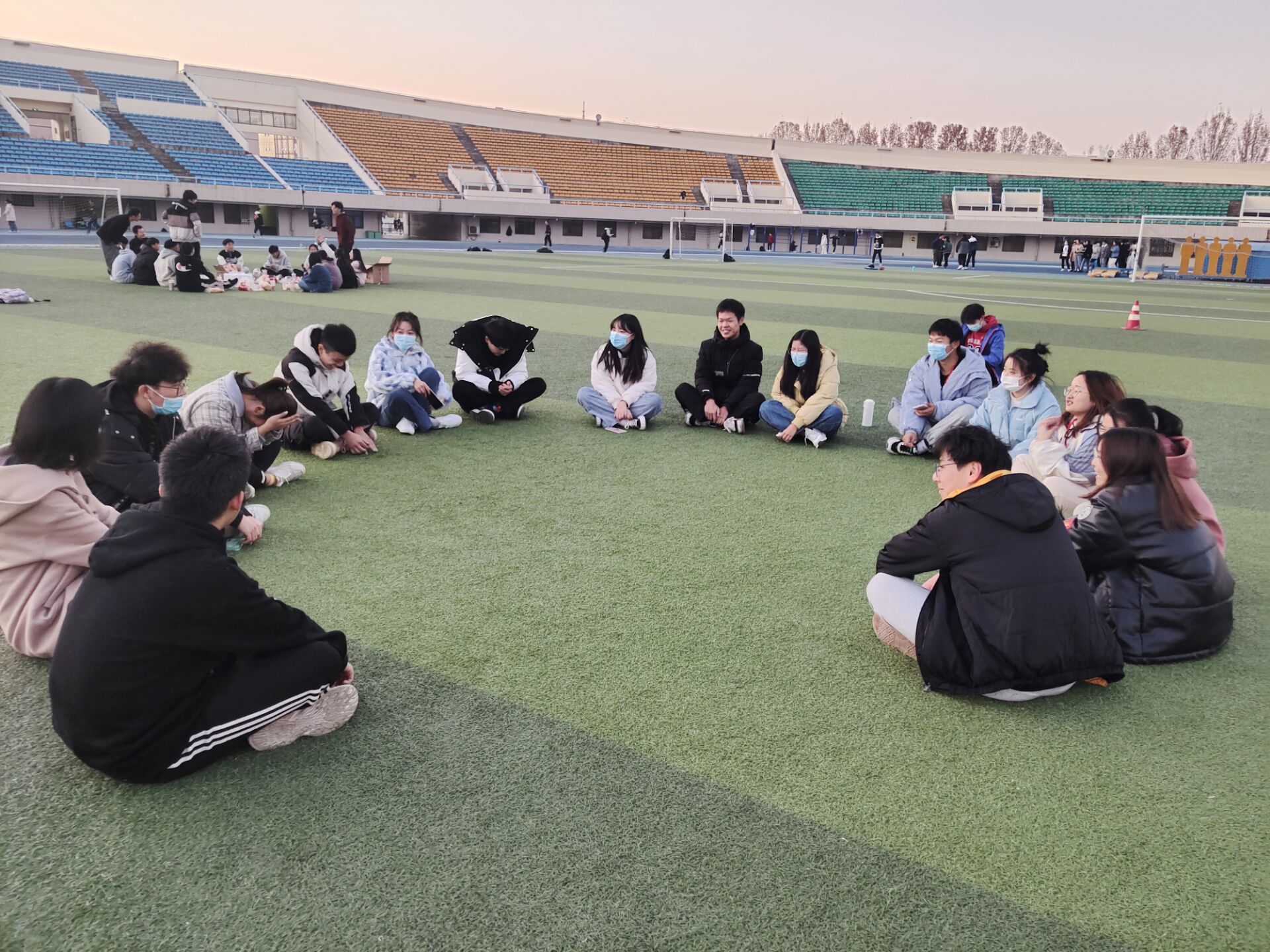 活动开始前,主持人胡雅然和王家林对本次“破冰之旅”活动的流程、游戏内容作了简要介绍。活动过程中,各位成员在暖身游戏“击鼓传花”环节中进行了自我介绍,增强了彼此之间的认识与了解,同时调动了在场成员的热情度和积极性。在“夹爆气球”环节,学员们用除手以外的身体部位夹住气球运往终点并压爆气球,展现学员们肢体协调能力。在“夹乒乓球”环节,锻炼了学员的反应能力和专注力。大家热情高涨,积极参与各种游戏,现场气氛活跃,体育场洋溢着青春和活力的气息。