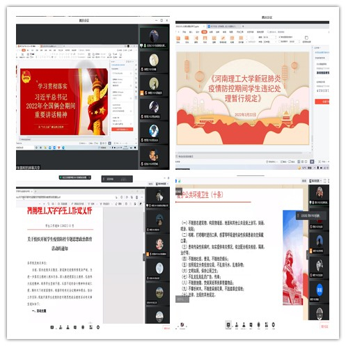 近日,为进一步落实立德树人根本任务,深入推进爱国主义教育,深入学习贯彻习近平总书记在2022年全国两会期间重要讲话精神促进文明行为养成及提升社会文明程度,我院举行线上专题学习会议,本次政治理论学习各年级分别组织开展,各年级辅导员老师主持。