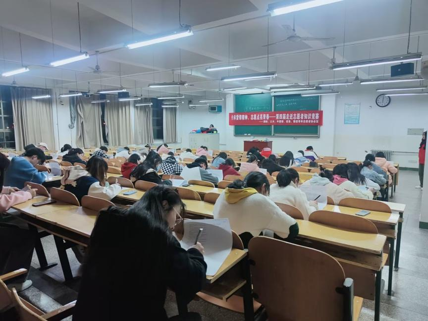 竞赛以抢答、竞猜、笔试的形式进行,以多样的方式在潜移默化中加深志愿者的知识印象。3月18日晚开展“走近志愿者”知识竞赛擂台赛,五个学院青协的志愿者以学院为单位两两比拼,比赛过程中志愿者激情竞答,纷纷参与抢答。擂台赛的开展不仅丰富了志愿者的知识,还增强学院之间的友谊。19日晚开展笔试测试,检测知识的累积成就,志愿者笔下如有神,在这场测试中取得较好的成果。