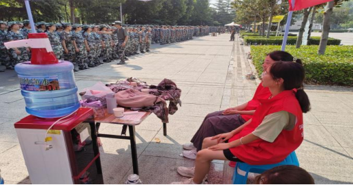 军训无疑是辛苦的,但新生学子们的脸上都洋溢着青春的笑容,相信这次的军训生活能让他们有所收获,有所锻炼。这次军训不仅锻炼了新生们坚韧不拔的毅力,也培养了团结互助的精神。展示了青年志愿者们服务同学,奉献爱心的责任意识,为新生开启美好大学生活奠定了良好基础。