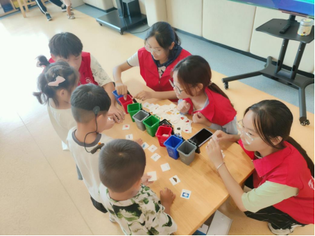 活动伊始,团队充分发挥了应急管理学院的专业优势,通过生动的案例讲解和模拟演示,为康复中心的听障儿童及老师普及了心肺复苏及海姆立克急救法。这不仅丰富了孩子们的安全知识库,更为他们心中种下了自救互救意识的种子。随后,团队成员以孩子们易于理解的方式,娓娓道来垃圾分类的重要性,巧妙融合趣味动画儿歌,让学习过程变得生动有趣。队员采取一对一模式,引导孩子们亲手参与垃圾分类的互动游戏,亲身体验将厨余垃圾、有害垃圾、可回收物及其他垃圾准确归类的过程。这一过程加深了孩子们对垃圾分类规则的理解,激励他们成为小小环保卫士,共同守护我们美丽的地球家园。除此之外,团队还关注到了孩子们的心理健康问题,通过轻松愉快的互动游戏和心理疏导活动,帮助孩子们缓解焦虑情绪,让他们感受到了队员的关怀与温暖。