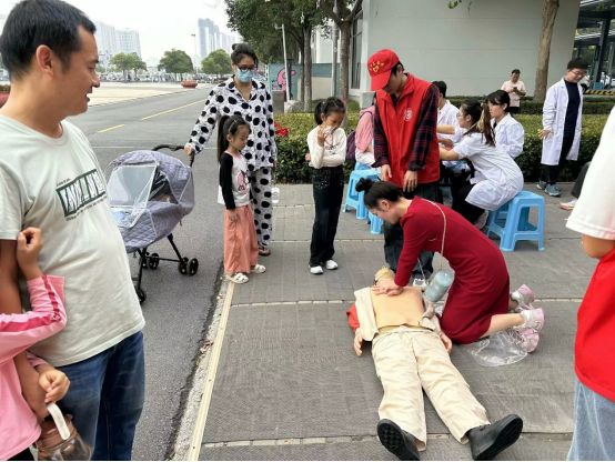 活动开始,应急青协成员和应急青马班成员为群众现场演示详细的心肺复苏和海姆立克救援方法,并邀请群众现场参与模拟演练,让他们亲身体验应急救援过程,加深对救援方法的理解和记忆,群众积极参与,并表示他们不仅学到了适应的应急救援知识,还增强了自我保护意识。紧接着,应急青协成员向过往群众普及应急救援知识,包括溺水自救、抽筋自救、烧烫伤急救等常见的应对措施,详细的知识科普加强了群众的安全意识。最后,体育青协成员进行武术操分解演示,为现场群众表演太极拳和五步拳,划出的一步一拳不仅展示出我校学生的气魄,也加深了群众对武术文化的了解和认识。
