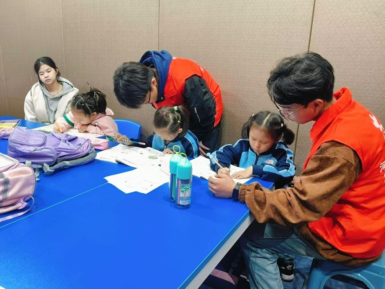 活动伊始,志愿者们细致地对孩子们进行一对一作业辅导,以喜闻乐见的方式讲解其中的问题。紧接着大学志愿者们分别细致讲解了紧急情况的识别、有效求助方法以及心肺复苏和海姆立克急救法的关键技巧,孩子们在志愿者的引导下积极尝试操作,成效初显,极好地培养了孩子们的安全意识。同时志愿者向孩子们讲述志愿服务精神和传统文化知识,让孩子们丰富知识、拓宽眼界。活动最后,志愿者们等到小朋友们被安全接送回家后打扫教室卫生、统一返校。通过这一创造性活动,不仅有效解决了社区学生课后作业辅导的问题,还极大地丰富了孩子们的课余生活。