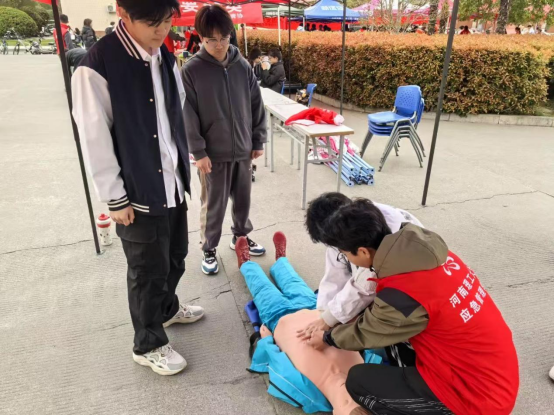近日,为传承和弘扬雷锋精神,增强师生的应急救护能力,应急管理学院青年志愿者协会宣讲团和青马班成员以“应急先锋护安全,雷锋薪火永相传”为主题,在学苑餐厅东广场联合举办了一场意义非凡的主题实践活动。此次活动巧妙地将急救知识的普及与志愿服务精神的传播相结合,吸引了众多师生积极参与。