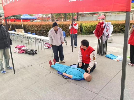 活动主要分为三个部分。在心肺复苏教学区,志愿者们借助假人模型,为参与者进行心肺复苏的分步演示,详细讲解心肺复苏的完整流程,包括胸外按压的手部动作、姿势、深度和频率,以及人工呼吸的配合要点。讲解结束后,志愿者们邀请参与者亲自操作,并在一旁认真观察,及时纠正按压姿势和节奏等方面的问题,确保每位参与者都能掌握正确的操作方法。在海姆立克急救法教学区,志愿者通过模拟气道异物梗阻的场景,生动地向师生们示范了腹部冲击法的操作流程,并耐心指导大家进行实际练习。在互动体验区,志愿者们组织了雷锋精神主题知识问答活动。题目涵盖了雷锋的生平、事迹以及精神内涵等方面,旨在通过趣味问答的形式,让师生们更深入地了解雷锋精神。参与者只要答对问题,就可以获得小零食或者雷锋主题文创书签,旨在通过趣味问答的形式,让师生们更深入地了解雷锋精神。