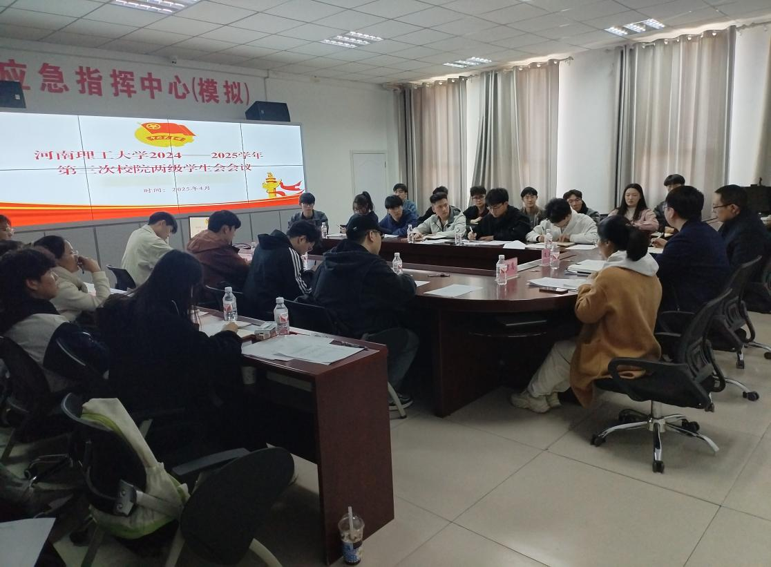 2025年4月1日下午,河南理工大学2025年第三次校院两级学生会工作例会在应急管理学院文综楼523室召开。校团委书记支光辉、校团委组织部李智慧、应急学院团委书记孙凯鹏参加会议,校院两级学生会主席团成员共30余人参会。会议由应急学院学生会轮值主席曾祥斌主持。本次会议旨在通过总结工作、剖析问题、研讨制度,推动学生会组织规范化、科学化发展。