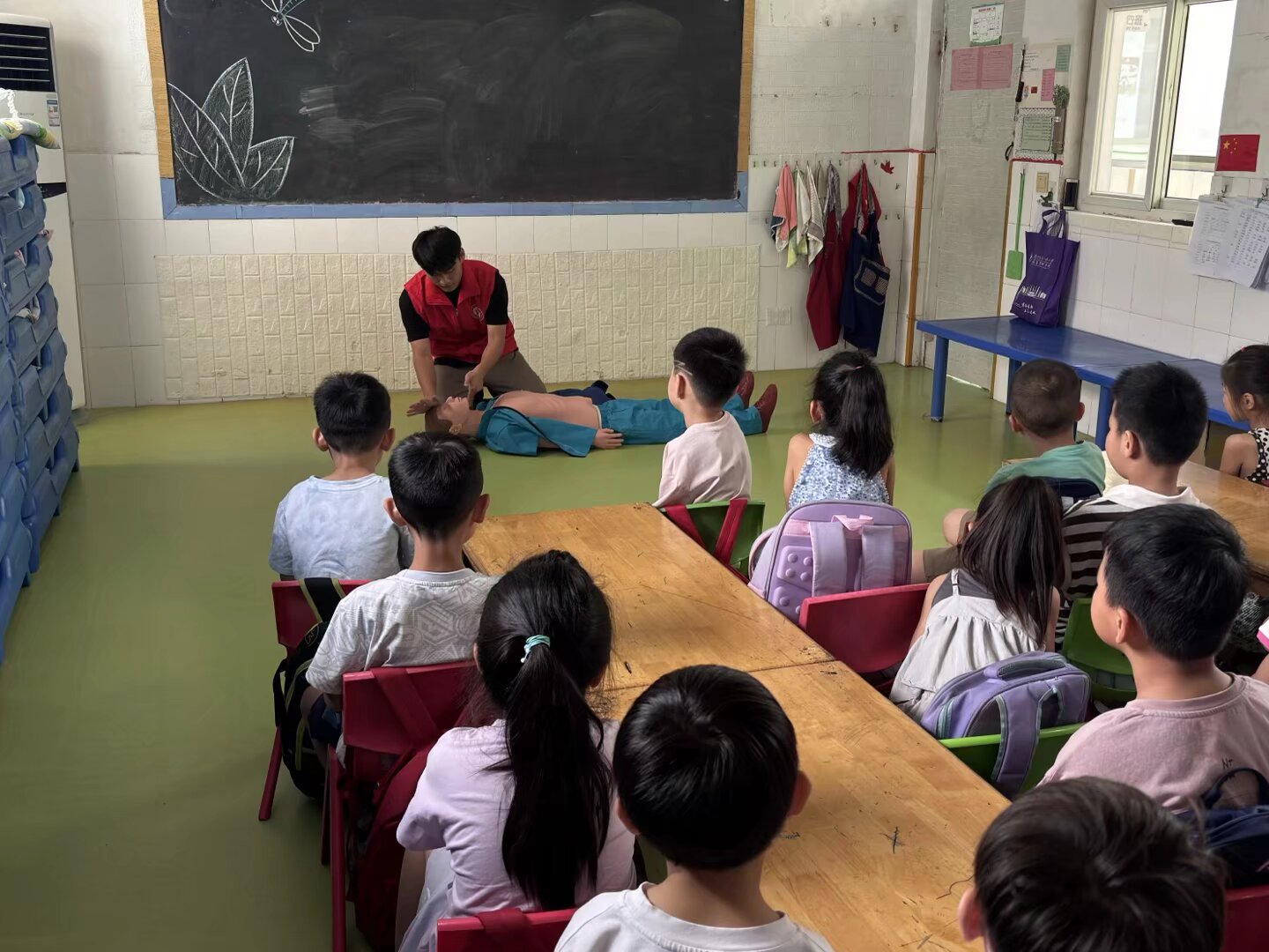 整个活动过程中,志愿者们注重与小朋友们的互动,通过提问、模拟演练等方式,激发小朋友们对急救知识的兴趣与好奇心。小朋友们积极参与,踊跃发言,现场气氛热烈而有序。此次急救知识宣讲活动不仅让小朋友们学到了实用的急救技能,更重要的是提升了他们的风险防范意识。志愿者们用实际行动诠释了“守护”的真谛,将安全的种子悄悄播撒在孩子们的心田。