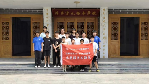 在陈家沟太极拳博物馆,实践团成员在展板前驻足,研读太极拳的起源与传承历程,并通过多媒体互动设备沉浸式欣赏不同流派的技法特色。随后,团队前往陈家沟太极拳学校,陈氏第二十一世太极拳嫡宗传人陈绍锟教授团队成员太极拳招式要领,并告诫成员们:“要在一招一式的切磋中体悟太极‘以柔克刚’的哲学内涵。”老师的耐心示范与队员们的专注学习,共同绘就了传统文化传承的生动画面。