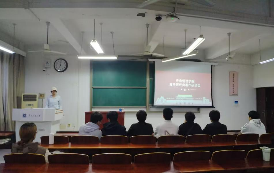 为深入培植学员家国情怀,深化思想铸魂、强化理论赋能、提升综合素养,10月25日,应急管理学院第五期“青马班”在文综楼510开展"经典著作研读会"活动。“青马班”班长叶梦真主持,全体青马学员参与。
