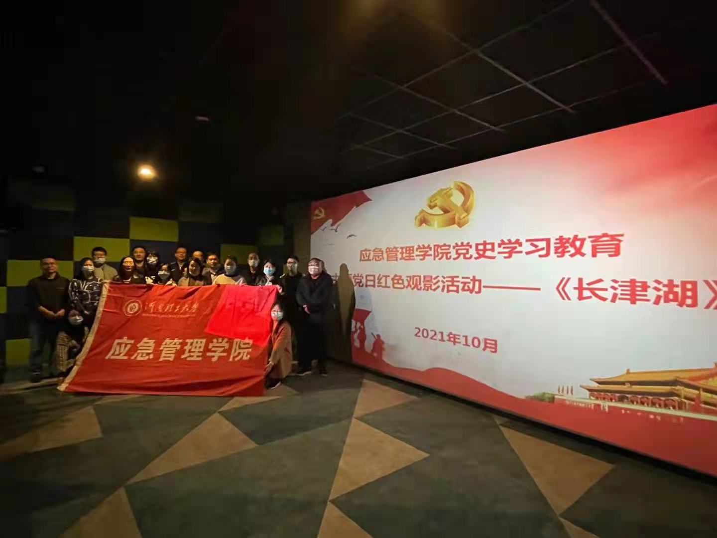 10月8日,为进一步深化党史学习教育,应急管理学院开展党日红色观影主题党日活动,组织全院教职工集体观看抗美援朝题材爱国主义电影《长津湖》,学院党委书记陈昊、副书记赵观石、各支部书记、教工党员,一起重温那段波澜壮阔的历史,深刻感悟伟大抗美援朝精神。