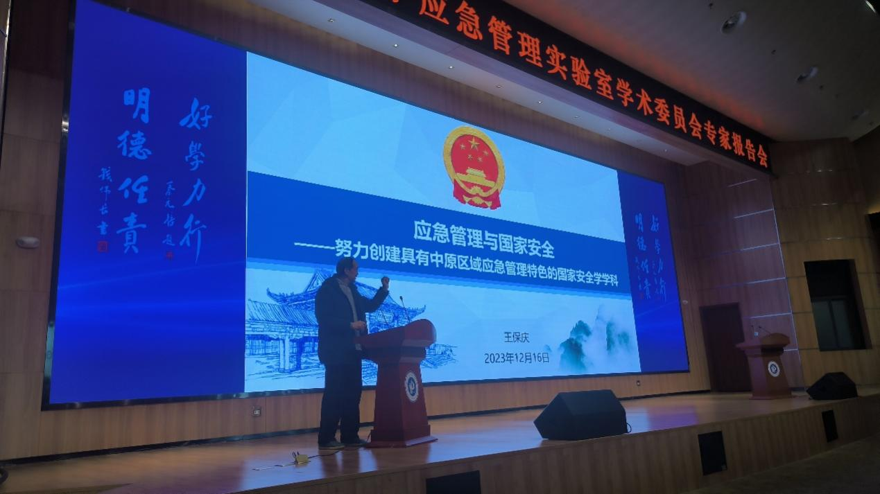 2023年12月16日下午,河南理工大学应急管理实验室学术委员会专家报告会在学校第二图书馆学术报告厅A厅举行。报告会分两个阶段:第一阶段由河南理工大学原校领导(正校级)景国勋教授主持,第二阶段由中国人民解放军军事科学院原战略研究部王保庆研究员主持。