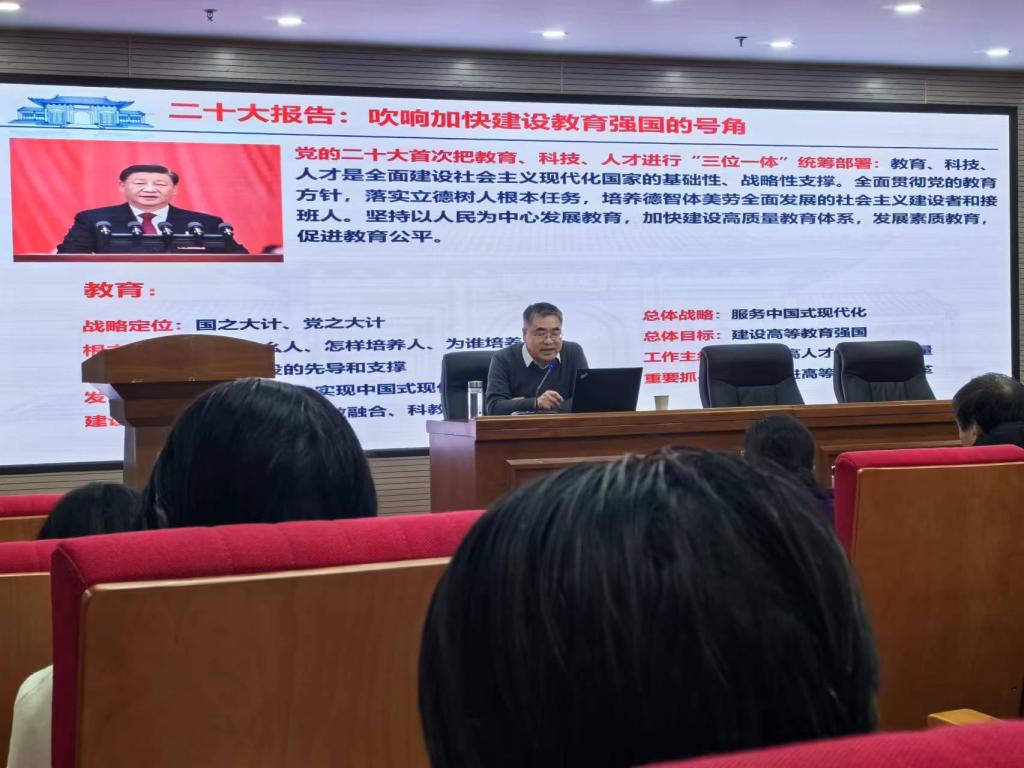 1月14日下午,河南理工大学教务处处长牛海鹏教授在国家重点实验大楼345室为学院教师作寒假培训专题报告,化工学院和应急学院全体教职工参加。报告会由化工学院党委书记张传祥主持。