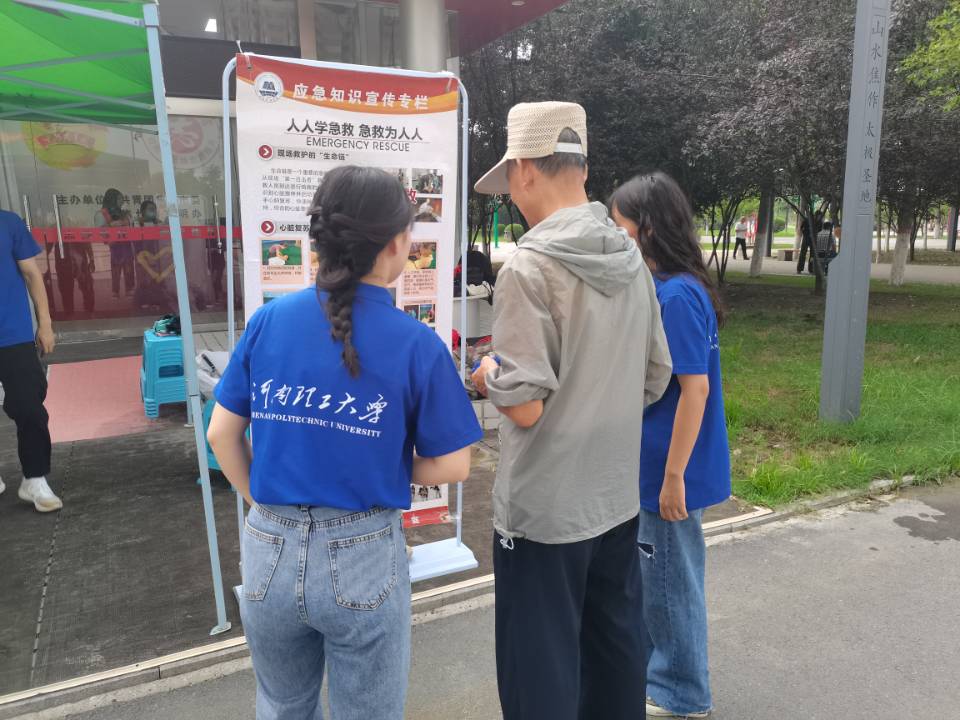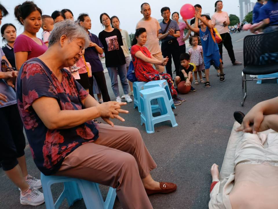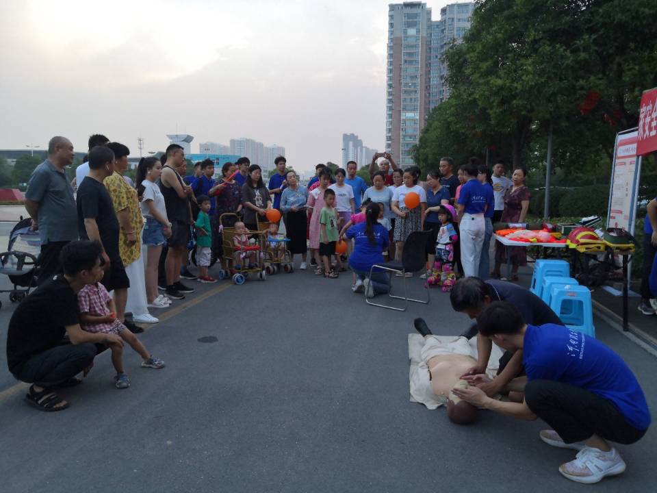 宣讲开始前,宣讲团成员分工明确、团结协作、有条不紊地筹备前期准备工作,例:放置应急物资装备、调试PPT、发放安全知识小贴士等。宣讲期间,宣讲团成员王旭根据自身掌握知识,结合PPT有侧重、有目的地从三个方面展开了宣讲。一是正确选择游泳场地:提醒儿童切勿在水库、天然湖泊等危险水域游泳,谨记在家长陪同下,前往符合国家标准的游泳馆。二是落水自救与他救的方法步骤:自救时,保持镇静是首要条件,平衡身体呈“大”字型是最佳姿势,耐心等待救援是因应之策;他救时,救助者需始终把自我安全放在第一位,利用空瓶子、尼龙绳、救生圈等救生物品救人。三是牢记防溺水的“六不”:不私自下水游泳、不到不熟悉的水域游泳等。宣讲团成员王旭特别强调防溺水教育不止针对儿童,家长也需要重点关注。此外,宣讲团成员魏鑫针对不同情境、不同人群突发急性呼吸道异物堵塞的情况向现场群众讲解并示范海姆立克急救法。宣讲团成员任少通介绍了心肺复苏急救法,特别介绍了触电、溺水等情况下心肺复苏急救法的具体方法和步骤,并呼吁现场群众共同学习,避免“一学就会,一做就废”现象。讲解结束后,群众热情高涨、积极参与,纷纷利用心肺复苏模拟人进行实操演练,团队成员用耐心、细心、巧心一一解答市民的问题,不断纠正市民的“易错、常错”姿势。宣讲结束后,宣讲团队成员主动清理垃圾,整理现场。