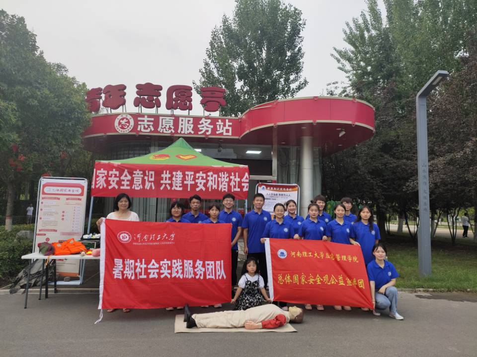 7月16日下午,河南理工大学应急管理学院“学行践”国家安全观暑期社会实践宣讲团成员前往龙源湖公园,将“实践所学”与“群众所需”结合,积极开展“防溺水安全教育”专题宣讲活动。