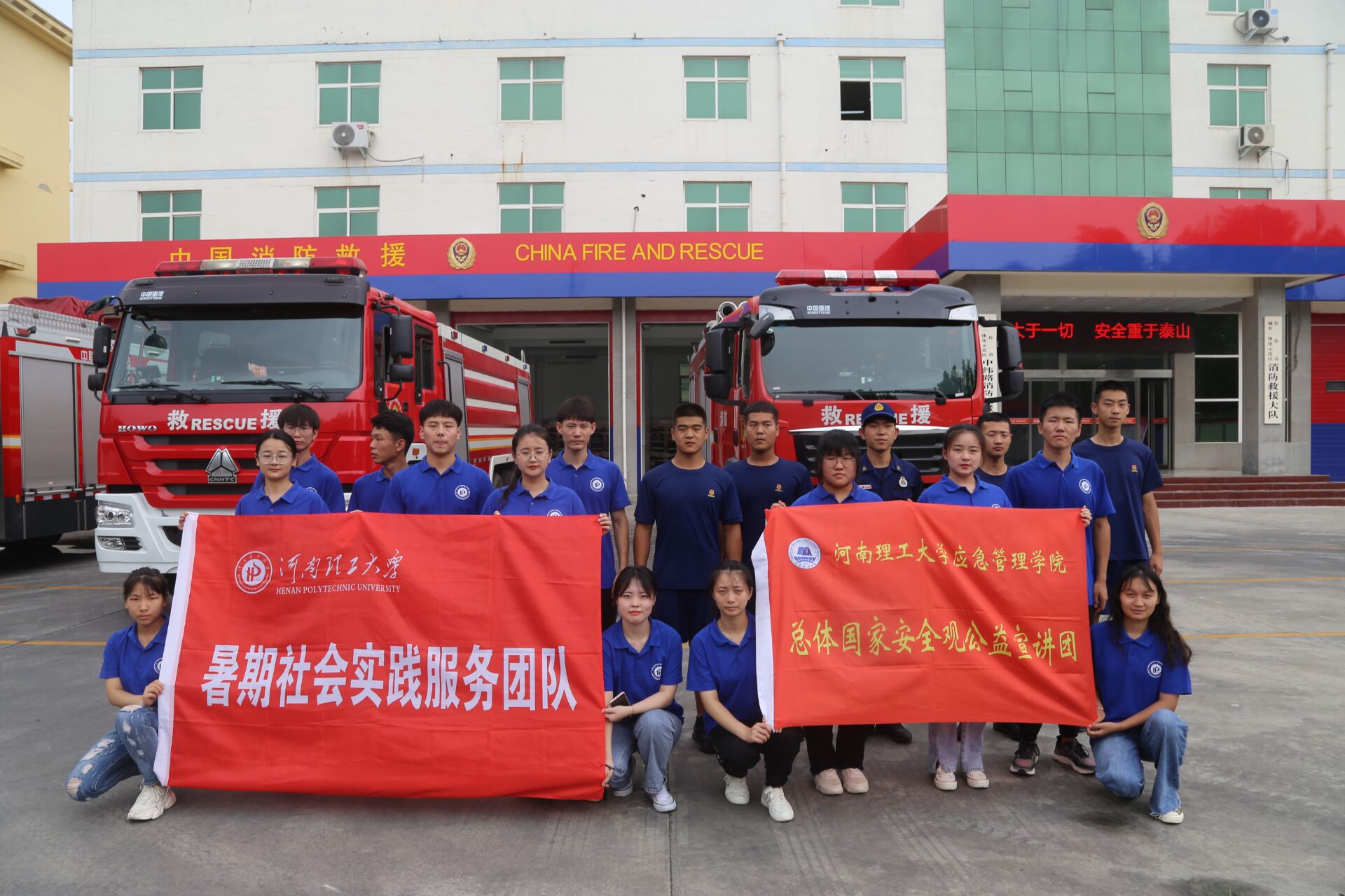 7月17日上午,河南理工大学应急管理学院“学行践”国家安全观公益宣讲团赴焦作市城乡一体化示范区消防救援大队进行消防安全培训,宣讲团成员10余人参加此次活动。