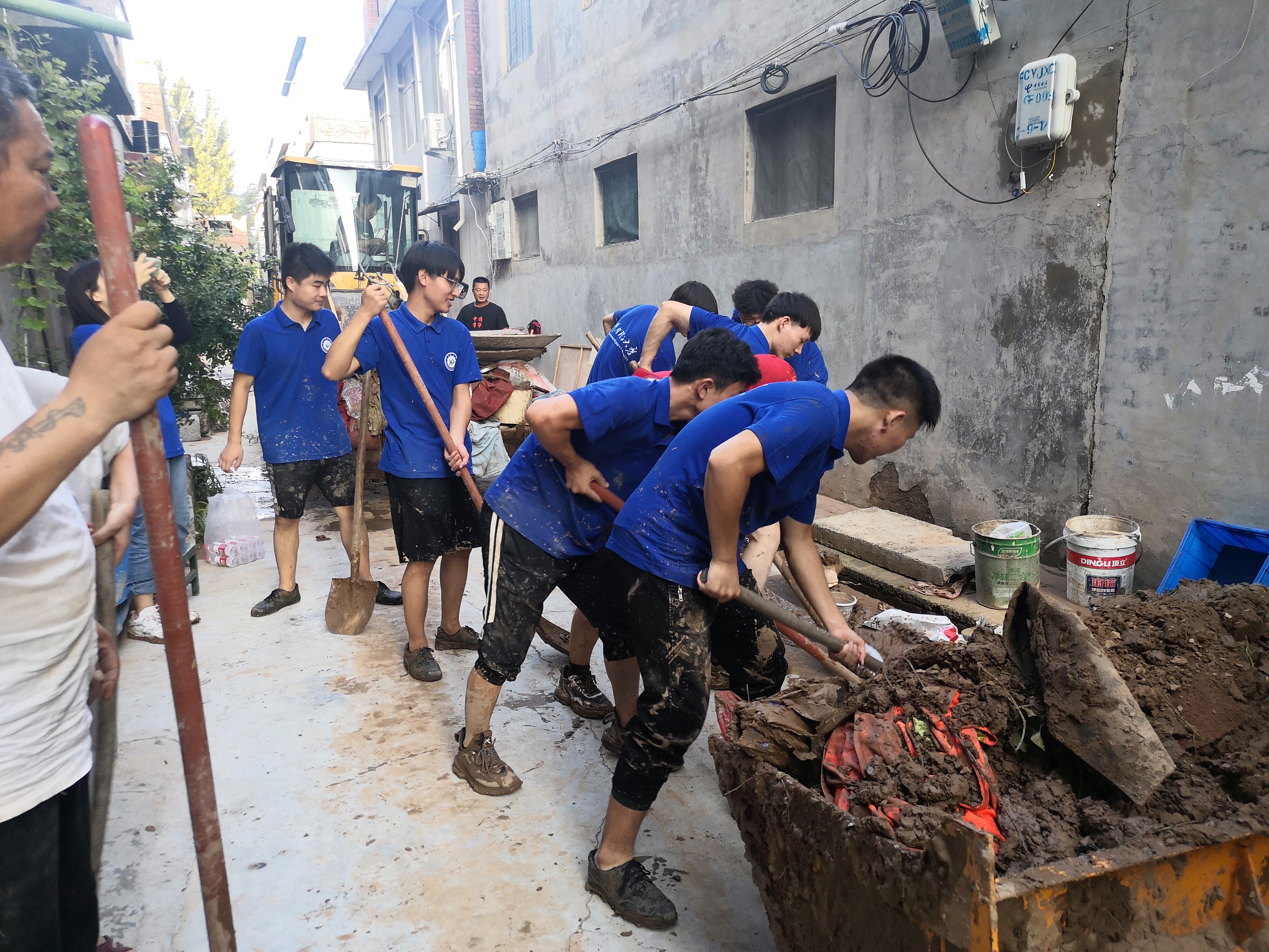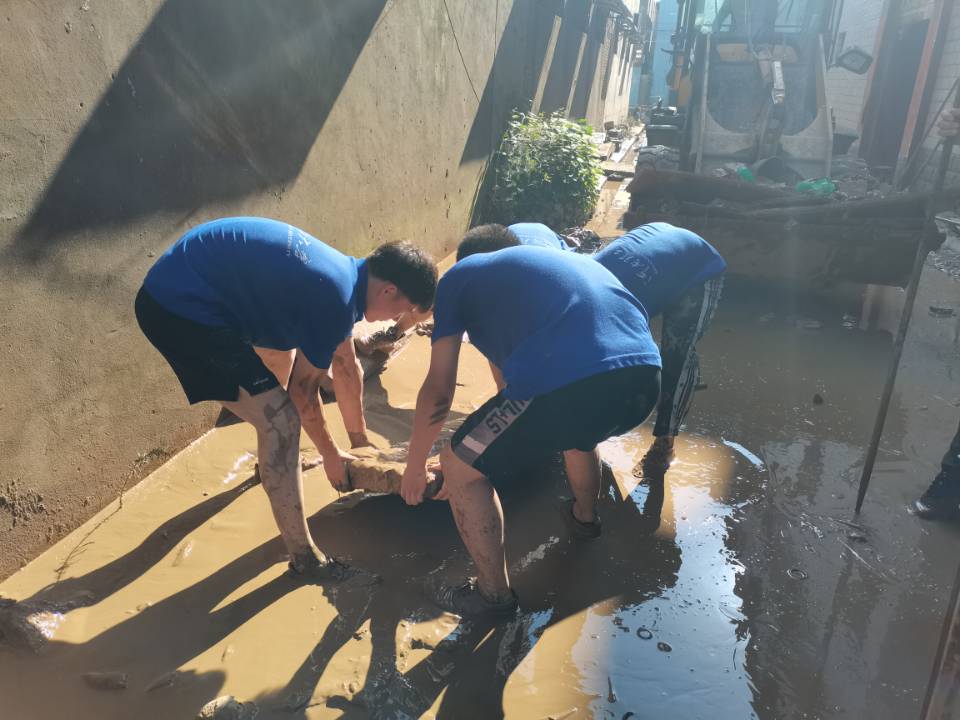 7月24日下午,河南理工大学应急管理学院全体实践团成员共计20余人积极响应号召,主动联系基层组织,参加志愿服务活动,前往恩村一街协助村民开展清淤清理工作,帮助村民尽快恢复生产生活秩序。