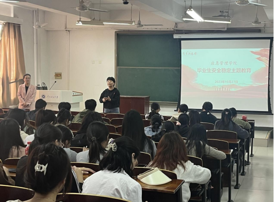 筑牢安全防线,强化责任担当。10月27日上午,应急管理学院在文综楼510教室开展毕业生安全稳定主题教育活动。会议由院党委副书记任华和2020级辅导员杨笑冰担任主讲,全体20级学生参会。