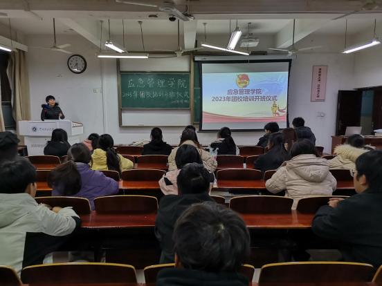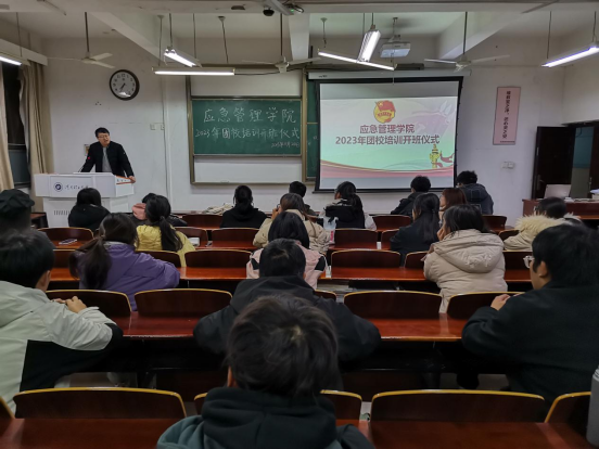 为提高团干部思想政治素质,加强对团精神内涵的理解,11月18日,应急管理学院在文综楼509教室举行2023年团校培训开班仪式,我院党委副书记任华、团委书记孙凯鹏出席本次开班仪式,学院2023级团支部委员、2022级新任团干部和学院“青马班”全体学员参与。
