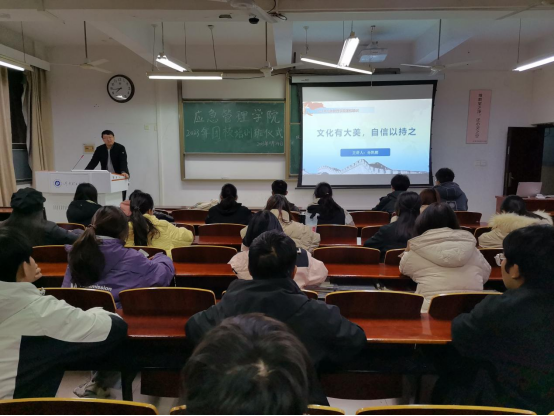 仪式开始,任华提出,希望通过培训来提升青马班成员和团员的能力,使学生骨干能发挥好作为老师与同学们之间进行高效全面沟通的桥梁作用,同时树立先锋模范形象。随后,孙凯鹏以“文化有大美,自信以持之”为主题,从文化自信何以“信”、文化自信“信”什么、文化自信躬自“信”三个方面全面讲述如何做到文化自信。他指出,自信从历史中来、自信从奋斗中来、自信从实践中来,我们新时代青年应守正创新,守其精华去其糟粕,以科学的理论激发奋进的光芒,展现奋进的力量。