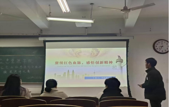 本次微课比赛的主题为“赓续红色血脉,感悟奋斗精神”,参赛者们通过制作探索红色革命精神及奋斗精神相关的微课,借此表达自己对于红色革命精神和奋斗精神的认识与理解。在比赛过程中,参赛同学通过自己所制作各具特色的PPT向我们讲述了红旗渠精神、西柏坡精神等红色精神,并从不同角度出发展示创新精神,生动地展现了红色血脉和奋斗精神的融合与传承。在演讲结束后,由现场评委对参赛者进行提问并打分。最终,经过激烈角逐,应急硕一班孙转获得一等奖,管理2301李佳依、应急2302王少华获得二等奖,管理2302靳鹏宇、管理2302秦途、事管2202黄艺冉获得三等奖。
