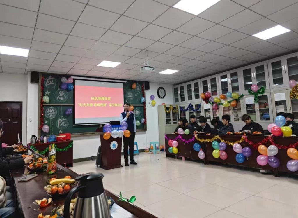 为迎接2024元旦的到来,交流团委学生会内部感情,12月26号晚,应急学院在文综楼507教室开展“时光启盛,璀璨迎新”学生元旦联欢会,由团委书记孙凯鹏主持,团委学生会及各年级学生干部代表成员参加。