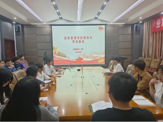 为促进学院领导与学生干部之间的沟通交流,增进师生之间的了解与互动,近日,应急管理学院在文综楼518教室开展了一场领导与学生座谈会。会议由学院团委书记孙老师主持,学院党委副书记任华,学院团委、学生会、班长联席会、青协等各部门学生组织代表参加此次座谈。