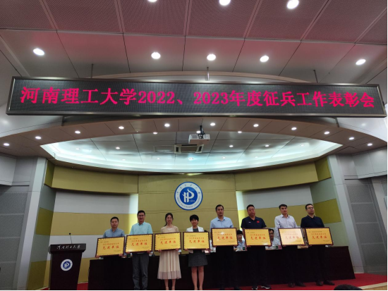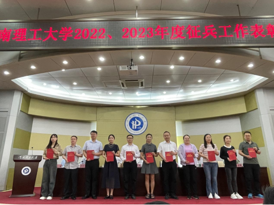 会议强调征集大学生入伍对国家及个人的重要意义,相关部门及各学院一定要站在讲政治、讲大局的高度,统筹安排、精心组织,推动学校征兵工作迈向新的高度。要将征兵工作作为一项严肃的政治任务,务必抓好精准宣传并落实服务保障工作。要抓好精准宣传,通过校园广播、网站、公众号等多种途径,将今年征兵工作政策信息传达到每一名毕业生。随后,宣读了《关于表彰2022年度、2023年度征兵工作先进单位和先进个人的决定》,主席台就座领导为获奖代表颁奖。其中,我院荣获2023年征兵工作先进单位,由院党委副书记任华代表领奖,同时,我院辅导员常婷、孙凯鹏分别获得2022年、2023年征兵工作先进个人荣誉。