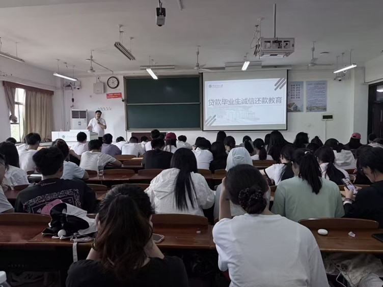 为切实强化高校助学贷款毕业生的诚信意识与责任担当,保障国家助学贷款还款工作平稳、有序推进,5月20日下午,我院举办了2025届贷款毕业生诚信还款教育主题班会。此次活动由21级辅导员海波老师主讲,全体2025届贷款毕业生参加。