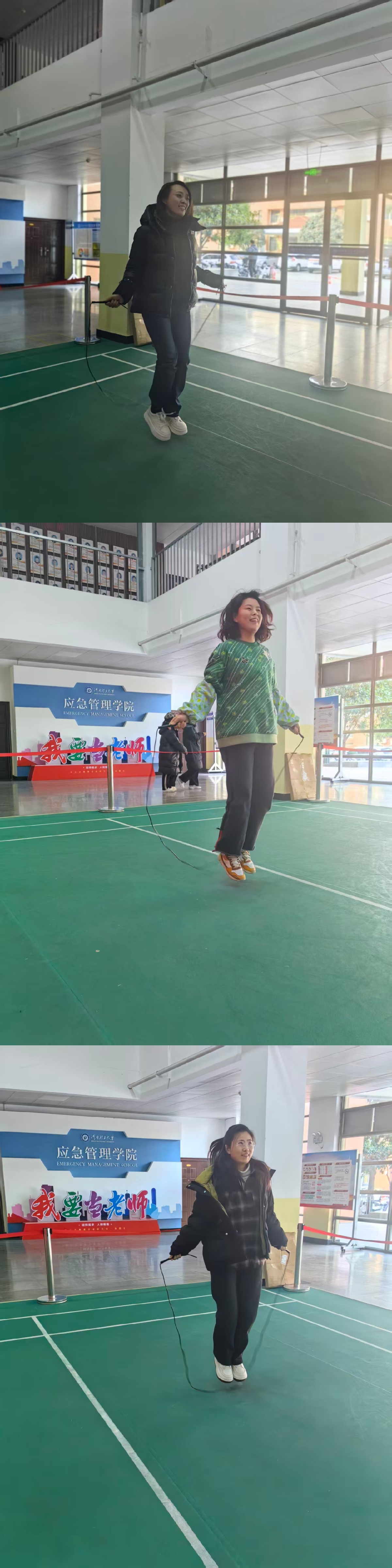 为增强教职工身体素质,倡导健康生活理念,营造充满活力、积极向上的校园文化,学院于2025年12月7日在文综楼一楼举办“健康跃动”教职工单人跳绳挑战赛。