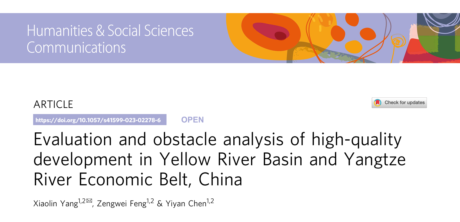 学院杨小林教授团队在区域高质量发展研究中取得新进展。2024年2月25日,相关成果以“Evaluation and obstacle analysis of high-quality development in Yellow River Basin and Yangtze River Economic Belt, China”为题,发表在Humanities & Social Sciences Communications,并被WebofScience数据库收录。该期刊是Nature旗下唯一面向人文社会科学的子刊,为SSCI一区期刊,同时被A&HCI索引收录。